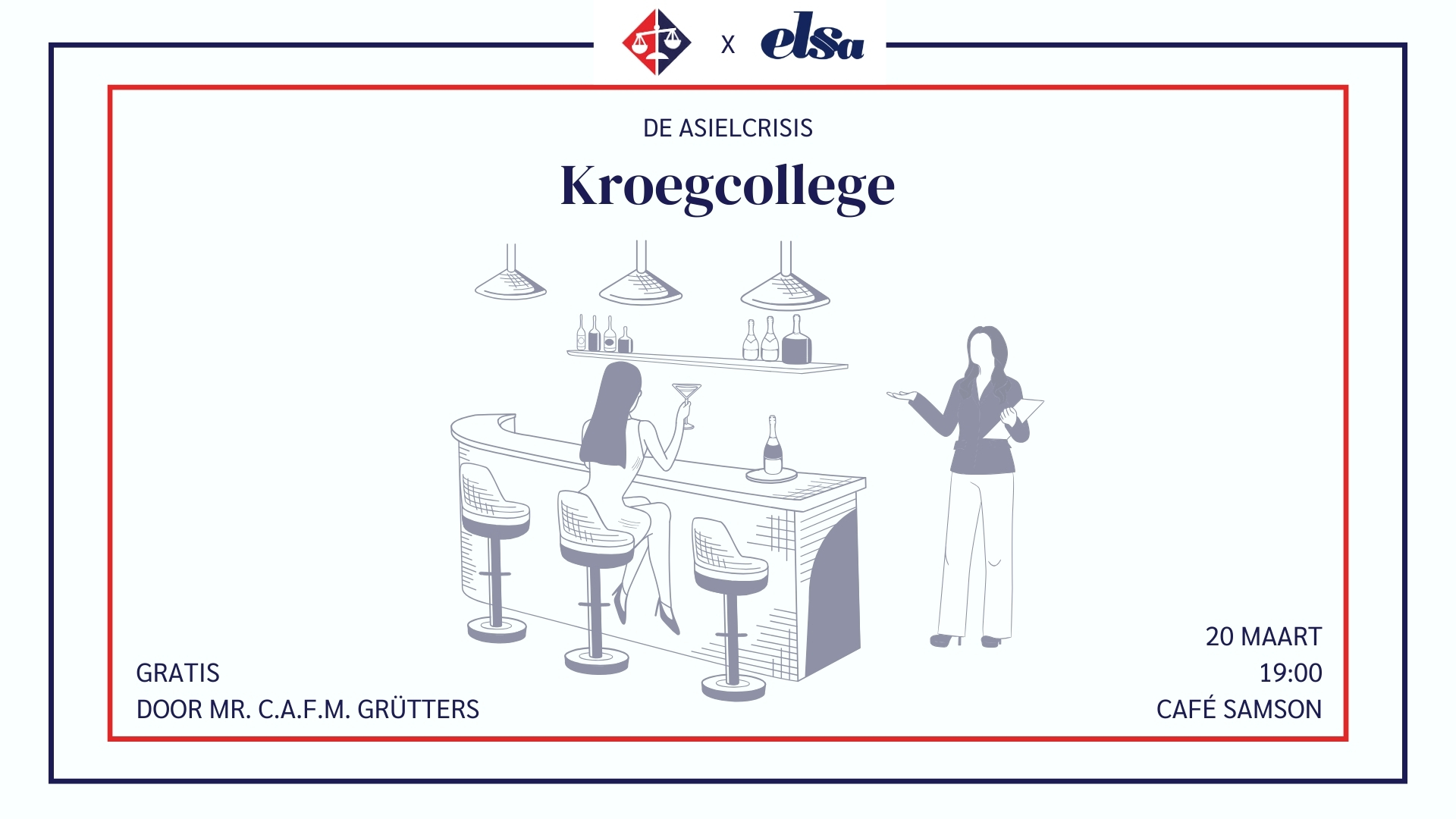 Café Samson Houtstraat 4, NijmegenLieve allemaal, Donderdag 20 maart hebben wij samen met ELSA (European Law Students’ Association) een kroegcollege georganiseerd.❤️💙 Tijdens dit kroegcollege zal mr. C.A.F.M. Grütters, onderzoeker aan de RU, ons meenemen