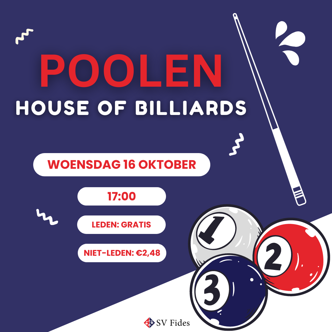 House of Billiards (Graafseweg 39) Graafseweg 39Poolen met Fides!❤️💙 Ben jij klaar voor een avond vol plezier en gezelligheid?🤪 Laat je van je beste kant zien tijdens een gezellige poolavond op 16 oktober om 17:00 bij House of Billiards in Nijmegen!🎱 Of je nu een doorgewinterde speler bent of nog nooit een keu hebt vastgehouden, iedereen is van harte welkom!😊 Geniet